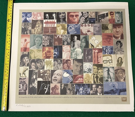 This limited edition print was provided to staff members at the dawn of the 21st Century. It provides a montage of 62 key 20th Century Fox films 1935-38 & comes with original sleeve, backing card & list of the 62 films featured. This item is hand-numbered in the bottom left corner.