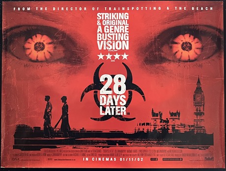 UK Quad Advance cinema poster for the zombie horror film "28 Days Later" (2002).Directed by