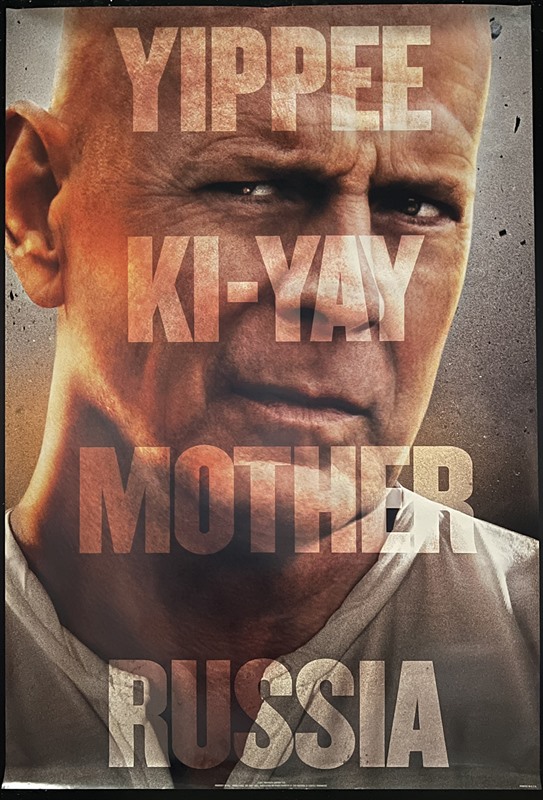 A poignant poster. Bruce Willis is indelibly linked to the "Die Hard" film franchise, having starred in all five films 1988-2013. Willis's "Yippee Ki-Yay.."catch-phrase was a staple in the films.
