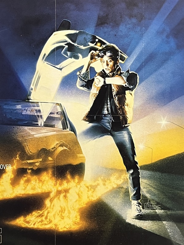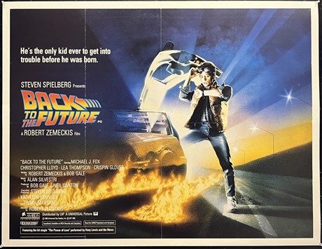 UK Quad linen-backed cinema poster for the debut "Back To The Future" (1985) film, with poster illustration by Drew Struzan.