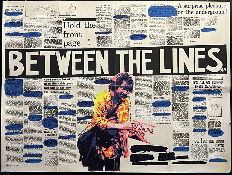 There is a slightly different version of the UK Quad bearing more coloured splashes of day-glo but with text from US newspapers whereas our version has text from various UK publications. Originally the poster carried bespoke cinema text in the bottom right corner ("Screen On The Hill", near Belsize Park & now known as the "Everyman") but this has been blanked out. "Between The Lines" had a limited run in the US market & a tiny release in the UK so this is a genuinely scarce poster.