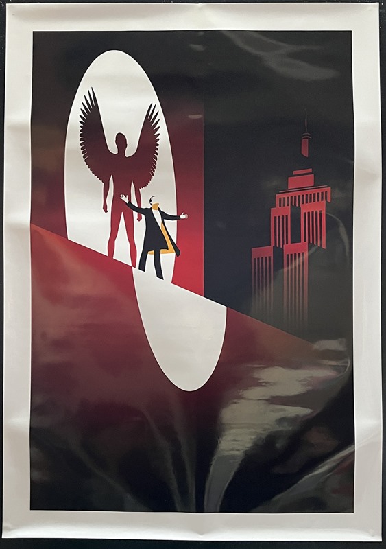 BAFTA commissioned artist Malika Favre at "Human After All" Studios to provide interpretations of the five nominees for the "Best Picture" award for posters & programme covers used at the event (please see: https://www.bafta.org/stories/ee-british-academy-film-awards-brochure-covers-2015/). The "Birdman" poster here is printed on a heavy stock gloss paper & lacks any text so is likely to have been some kind of proof copy. "Birdman" distributed by 20th Century Fox.