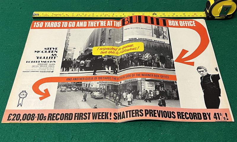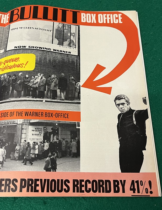Double-page (11"x 17") Trade Ad for Steve McQueen's "Bullitt" (1969).
