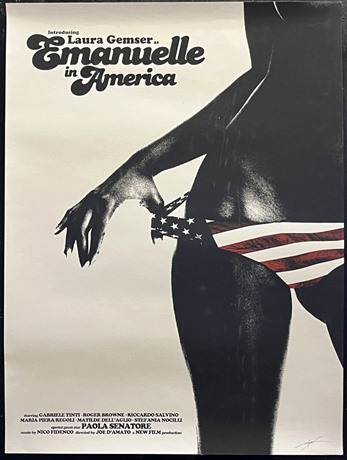 Licensed Mondo 2012 screenprint (18"x 24") for the Laura Gemser film "Emanuelle In America" (1977) by the artist Jay Shaw.