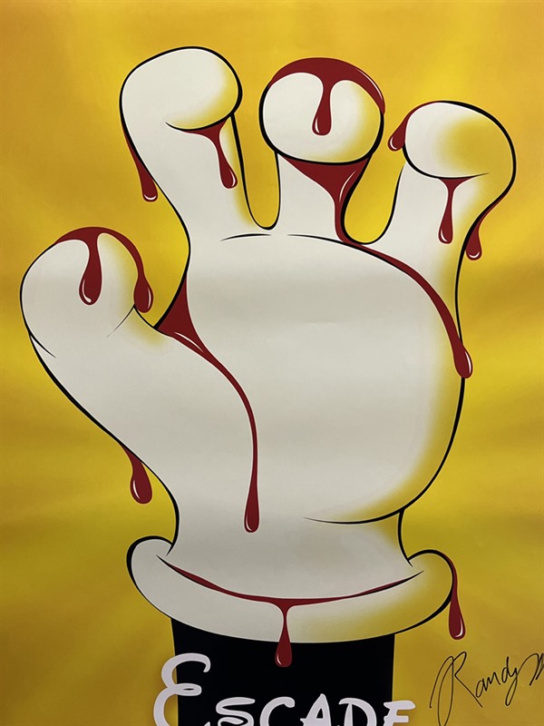 The poster design is relatively simple (befitting the low budget) but further "pokes" Disney with its depiction of an animated hand dripping with blood!