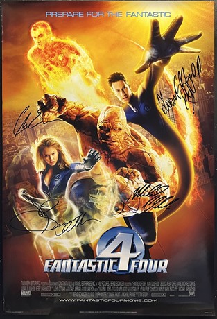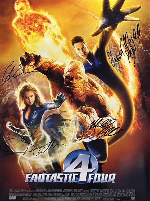 A scarce poster but one which has also been fully autographed by the "Fantastic Four", Ioan Gruffudd, Jessica Alba, Chris Evans & Michael Chiklis. This Marvel Comics superhero movie was distributed by 20th Century Fox.