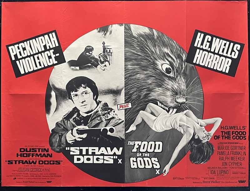 Really interesting UK Quad cinema poster for the double-bill horror & violence package of "Food of The Gods" (1976) & "Straw Dogs" (1971) c' 1977-78.