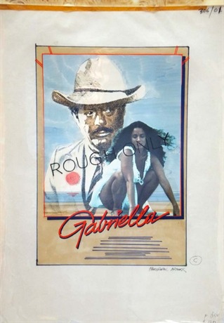 An unusual Vic Fair artwork prototype (16"x 23") for the Brazilian film "Gabriella" (1983), starring the Italian actor Marcello Mastroianni. The film did not appear to receive a UK release so it is likely that this piece was unused.