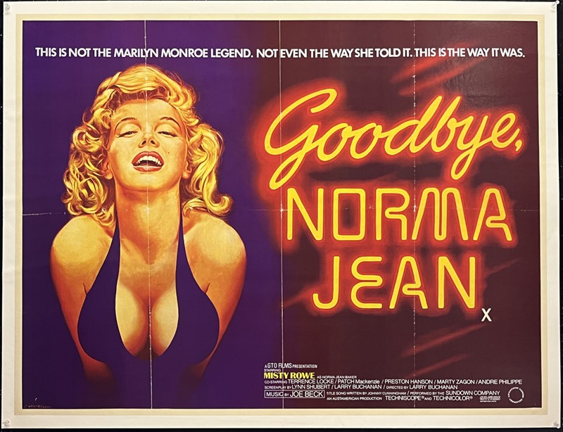 UK Quad linen-backed cinema poster for the Marilyn Monroe bio-pic "Goodbye Norma Jean" (1975) with poster illustration by Chantrell.