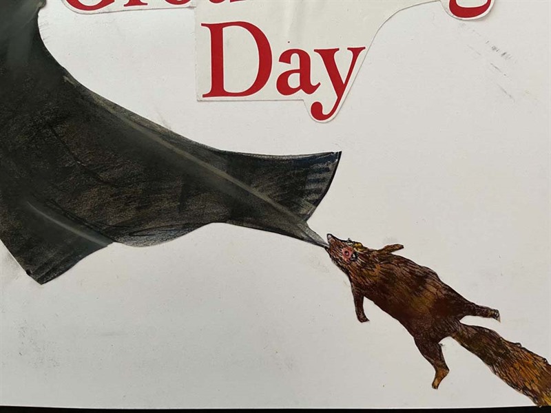 The mixed media artwork is based on card affixed to polyboard with an acetate overlay.