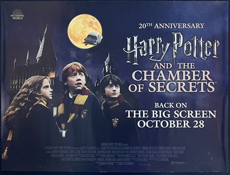 UK Quad cinema poster for the 20th anniversary re-release of "Harry Potter & The Chamber of Secrets" (2002) in 2022.