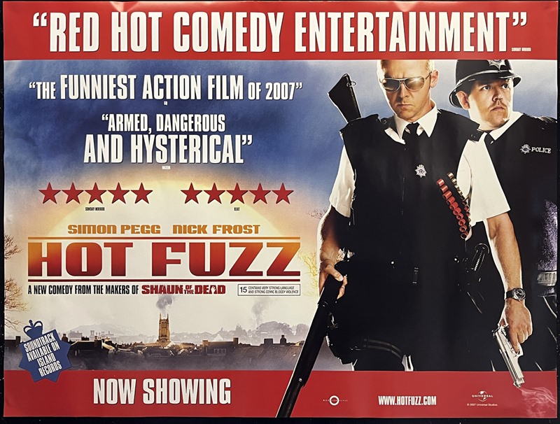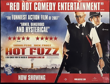 UK Quad cinema poster for the second of the "Cornetto Trilogy" of films starring Simon Pegg & Nick Frost, "Hot Fuzz" (2007).