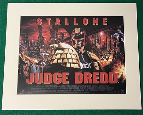Original UK mini-Quad poster (12"x 16") card mounted (15 3/4"x 19 3/4") ready to frame for "Judge Dredd" (1995).