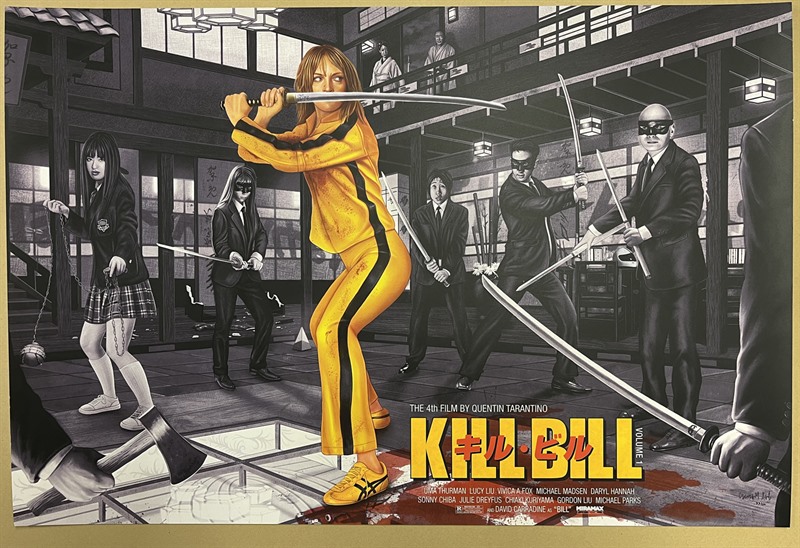 A 2022 privately commissioned screenprint poster (24"x 36") for Quentin Tarantino's "Kill Bill: Vol 1" (2003) with poster artwork by Oscar Martinez.