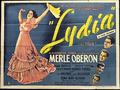 UK Quad cinema poster for the romantic drama "Lydia" (1941) starring Merle Oberon.