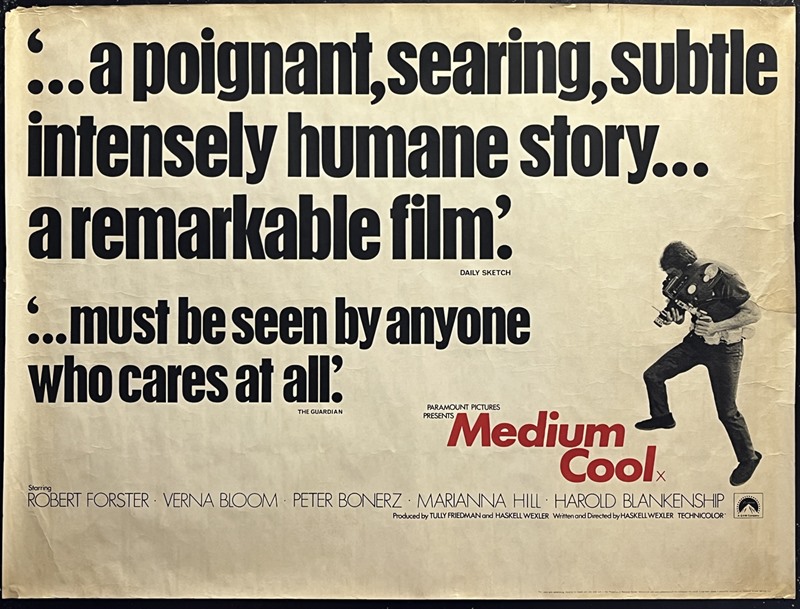 Rare UK Quad cinema poster for the American New Wave movie "Medium Cool" (1969).