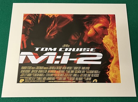 Original UK mini-Quad poster (12"x 16") card mounted (15 3/4"x 19 3/4") ready to frame for the Tom Cruise thriller "Mission: Impossible 2" (2000).
