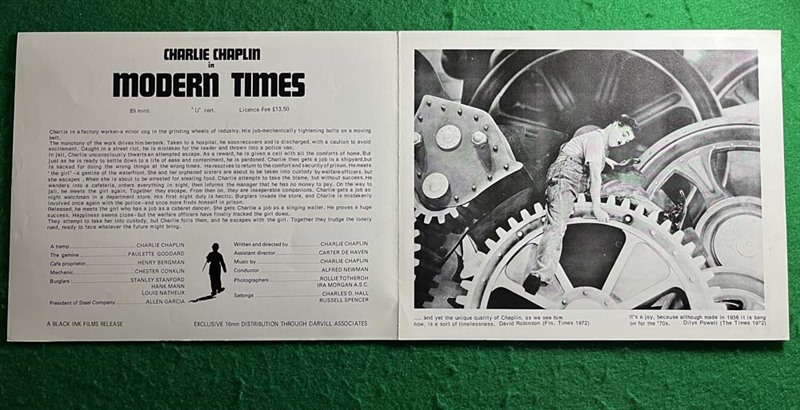 Four page UK foldout Synopsis for the Charlie Chaplin film "Modern Times" (1936).