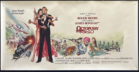 UK "Bespoke" cinema poster (12x 24" approx) for the Roger Moore James Bond film "Octopussy" (1983) with Dan Goozee artwork.