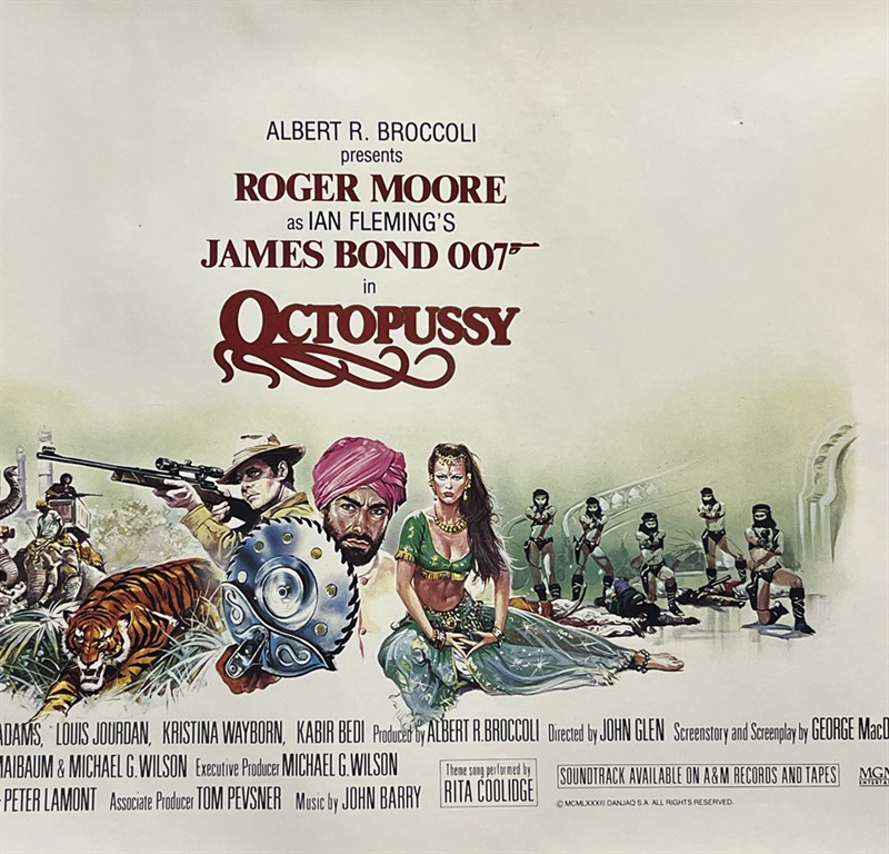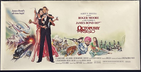 UK "Bespoke" cinema poster (12x 24" approx) for the Roger Moore James Bond film "Octopussy" (1983) with Dan Goozee artwork.