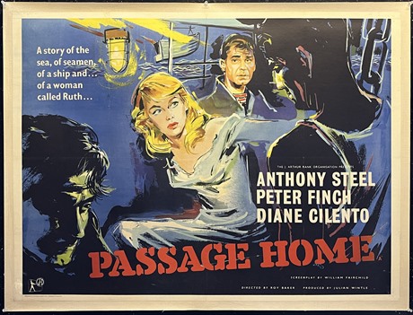 UK Quad linen-backed cinema poster for the British nautical adventure "Passage Home" (1955), the film starring Anthony Steel, Peter Finch & Diane Cilento.
