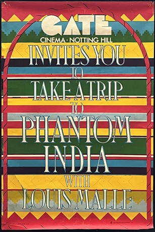 Original UK Double-Crown bespoke poster (19 1/2"x 29 1/2") for The Gate Cinema, Notting Hill, for a special screening of the Louis Malle film "Phantom India" (1969).