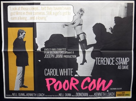 Fascinating customised UK Quad Style-B cinema poster for the classic Ken Loach film "Poor Cow" (1967).