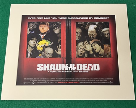Original UK mini-Quad poster (12"x 16") card mounted (15 3/4"x 19 3/4") ready to frame, for the horror-comedy "Shaun of the Dead" (2004).Mini-Quads were promotional items available in certain UK cinemas during the 1990's & early 2000's. These mini posters replicated the corresponding Quad designs but were smaller sized.