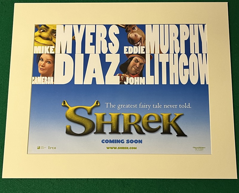 Original UK mini-Quad Advance poster (12"x 16") card mounted (15 3/4"x 19 3/4") ready to frame, for the comedy animation "Shrek" (2001).