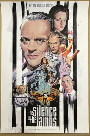 A 2022 licensed Alternative Movie Poster (24"x 36") for the Anthony Hopkins-Jodie Foster film "Silence Of The Lambs" (1991), this being the "variant" version.This screenprinted poster came as a "regular" version, in purple (see: