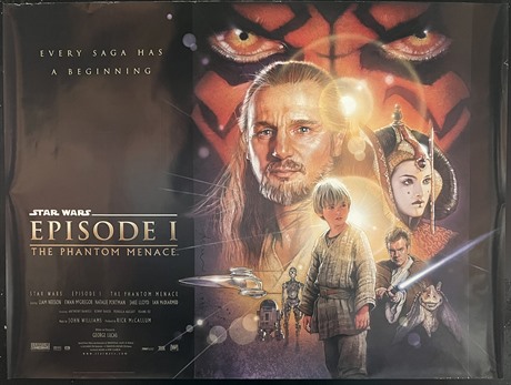 UK Quad cinema poster for "Star Wars Episode I: The Phantom Menace" (1999).Distinctive