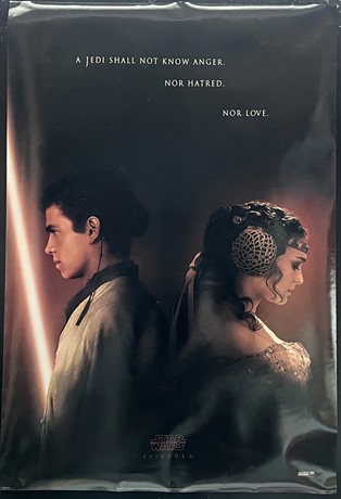 US 1-Sheet Style-A Teaser movie poster for "Star Wars Episode II: Attack of the Clones" (2002).The poster presents an atmospheric image of the two leads,