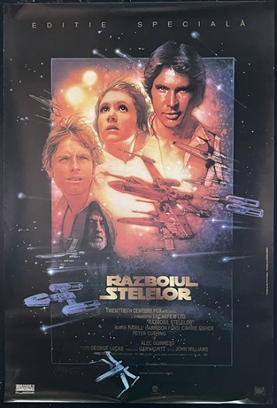 Scarce full set of three Romanian "Star Wars" cinema posters (18"x 26 1/2") for the 1997 re-release, all with poster illustrations by Drew Struzan.
