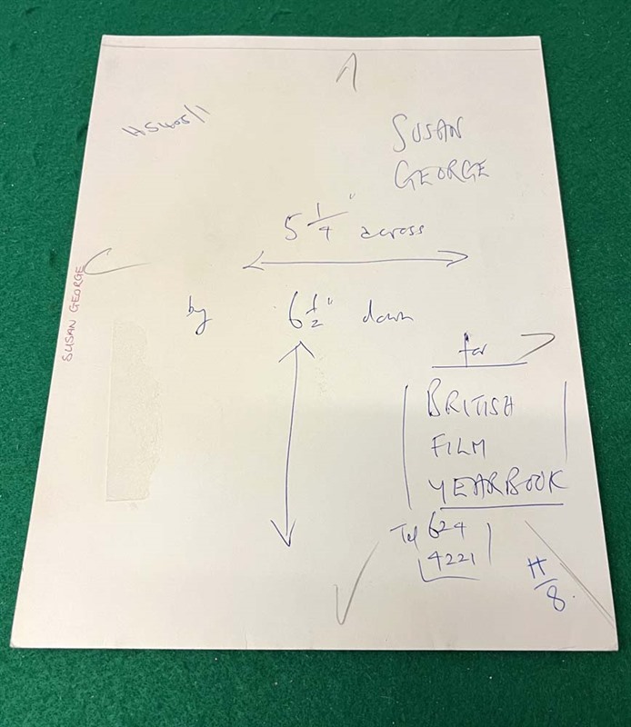 Attractive b/w publicity still (7 1/2"x 10") of Susan George apparently used for a "British Film Year Book" c' early 1970's.