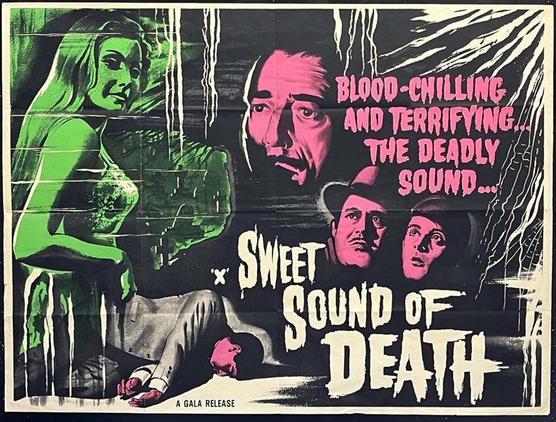 Scarce UK Quad cinema poster for the Spanish horror film "The Sweet Sound of Death" (1966) with poster art by Jack Hubbard.