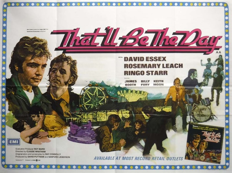 UK Quad poster for "That'll Be The Day" (1973) the music drama starring David Essex but with the likes of Ringo Starr, Keith Moon & Billy Fury as support. The poster presents a typical piece of Arnaldo Putzu illustration.