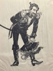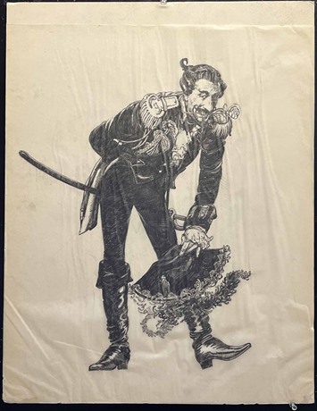 Original Vic Fair concept poster artwork (17"x 22 1/2") for the Terry Gilliam film "The Adventures of Baron Munchausen" (1988).This was one of several concept pieces Fair provided to Gilliam who apparently was always effusive in his praise but would subsequently change his mind & want something different! This piece is a delightful pencil artwork on tracing paper affixed to polyboard & shows the Baron in a lascivious pose. If interested we currently have another colour concept for sale too: