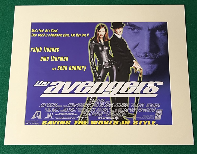 Original UK mini-Quad poster (12"x 16") card mounted (15 3/4"x 19 3/4") ready to frame for "The Avengers" (1998).