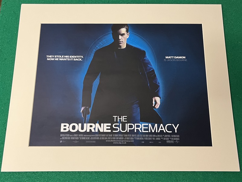 Original UK mini-Quad poster (12"x 16") card mounted (15 3/4"x 19 3/4") ready to frame for "The Bourne Supremacy" (2004).