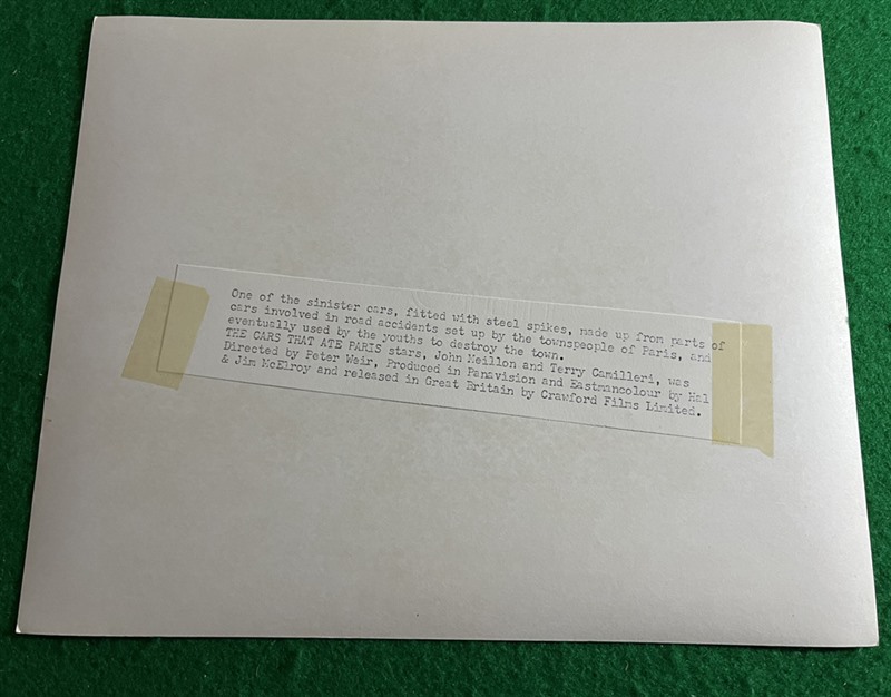Six UK b/w Publicity Stills (8"x 10" ea) for the Peter Weir Australian horror spoof "The Cars That Ate Paris" (1974).