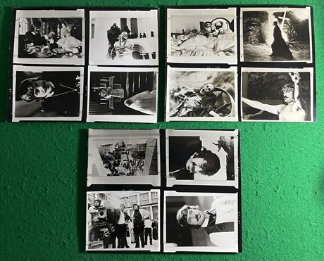 Three b/w contact sheets (8"x 10" each) with four photos each, including some candid shots on the set of the infamous Ken Russell film "The Devils" (1972).