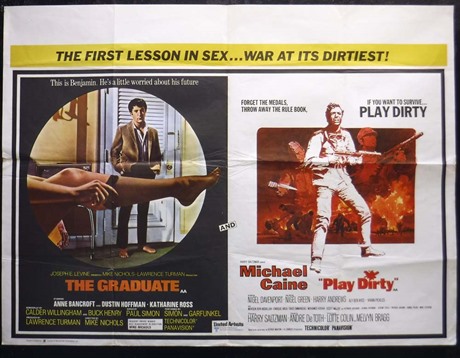 UK Quad double-billed poster for "The Graduate" (1967) & Michael Caine in "Play Dirty" (1969).This poster represented a re-release of "The Graduate". It is likely that the first re-release featured twinning with "The Thomas Crown Affair" (1968) see