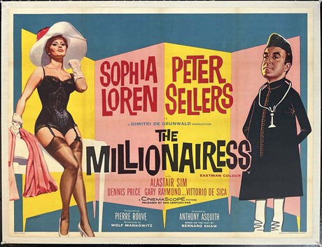 https://www.chantrellposter.com/ we show an image of Chantrell next to a "Millionairess" poster in his office (the artist was posing with a gun in his hand to be used as reference for another poster commission). The film spawned an unlikely hit comedy record "Peter & Sophia", which peaked at #5 in the UK charts, Dec 1960.