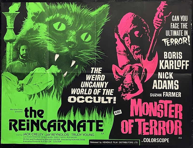 UK Quad cinema poster for the horror double-bill of "The Reincarnate" (1971) & "The Monster of Terror" (1965).