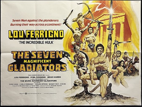UK Quad cinema poster for the Italian made "The Seven Magnificent Gladiators" (1983) with artwork by F Preettioni.