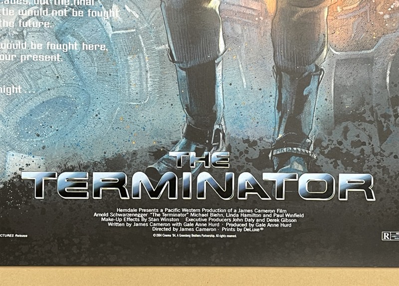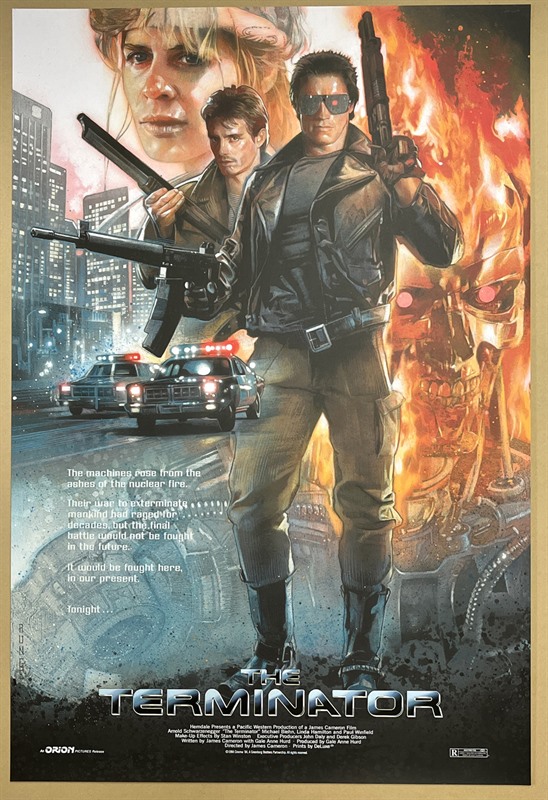 A 2023 private commission screenprint poster (24"x 36") for the classic Arnold Schwarzenegger film "Terminator" (1984).This commission was issued as a