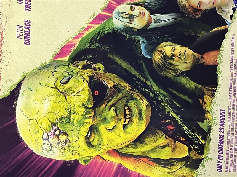 A fabulous modern poster design that communicates the gruesome tongue-in-cheek gore fest on offer. This poster dates from the 2025 cinematic release of the film. Kevin Bacon, Elijah Wood & Julia Davis co-starred.