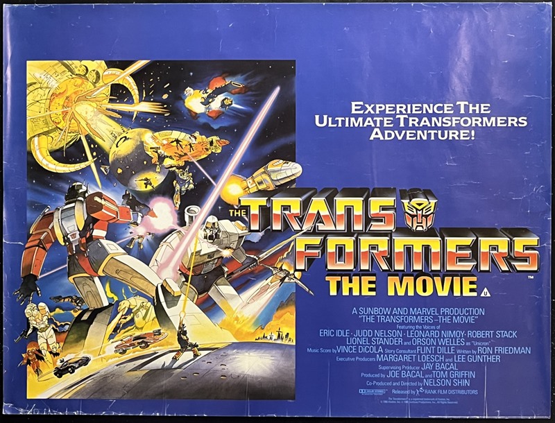 UK Quad unfolded cinema poster for the animated feature "Transformers: The Movie" (1986).
