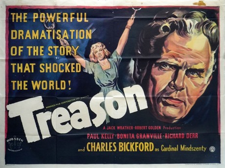 UK Quad poster for the Cold War drama "Treason" (1950) (released in the US as "Guilty Of Treason"). The film was based on the story of a Hungarian Priest who opposed both the Nazis & then the Communists. The poster design is based on the US poster campaign but features adapted artwork.