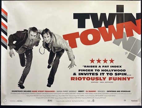 UK Quad cinema poster for the British dark comedy "Twin Town" (1997).